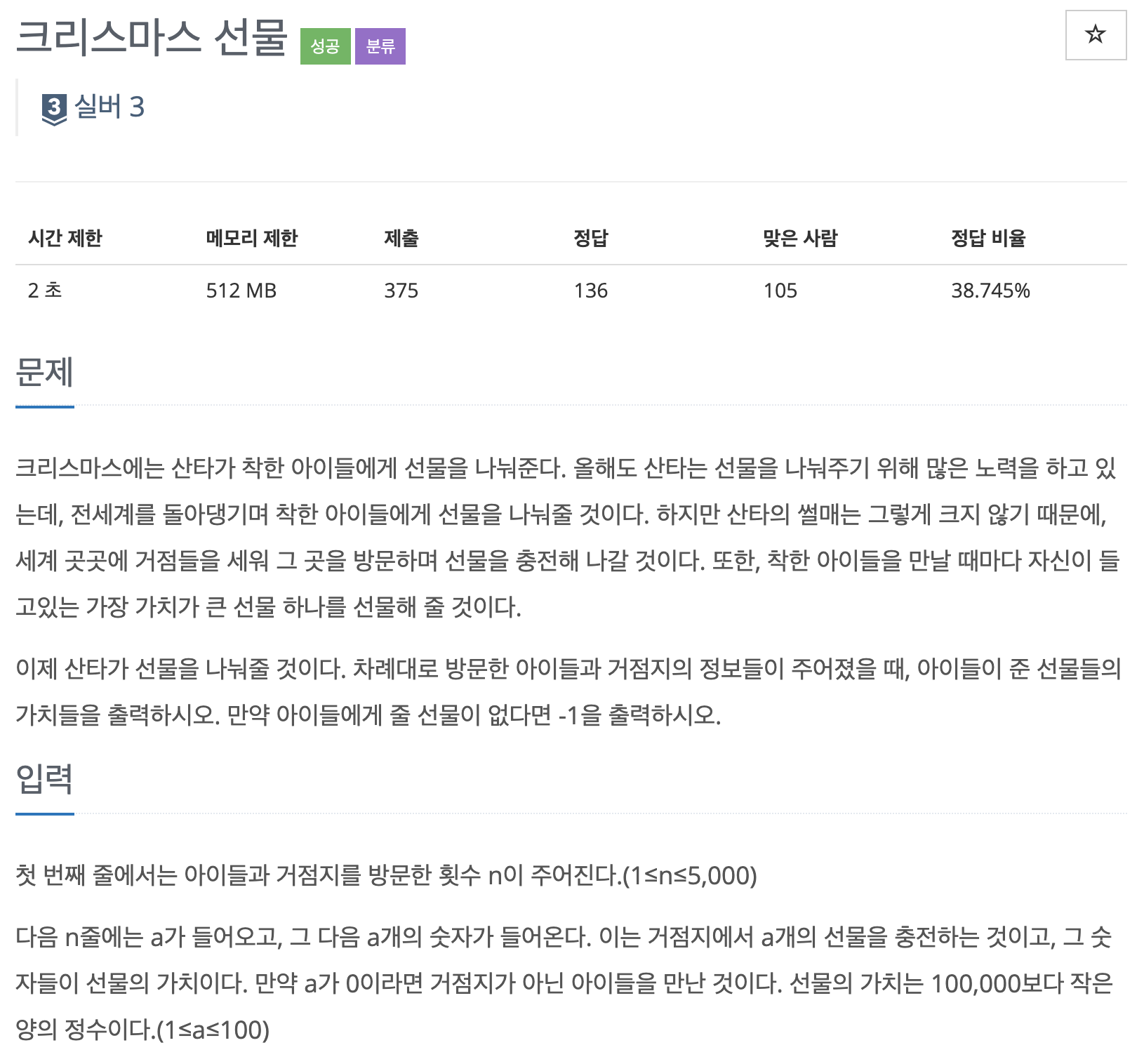 BOJ / 14235번 / 크리스마스 선물 [Python3]